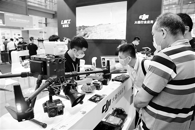 “十四五”规划提出,推动互联网、大数据、人工智能等同各产业深度融合,推动先进制造业集群发展,构建一批各具特色、优势互补、结构合理的战略性新兴产业增长引擎。2020年秋,第四届世界无人机大会在深圳召开,大会以“智慧点亮未来”为主题,大力推进无人机产业疫情后的创新应用与发展。 图为在我国研发生产的大疆无人机展位上,相关展品备受关注。 陈文 摄