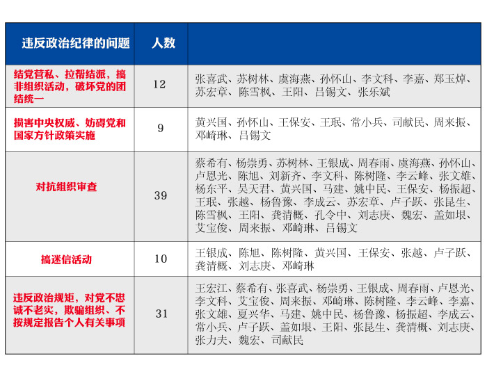 要解决党内政治生活中出现的这些问题,就要求党员干部时刻绷紧政治纪律政治规矩这根弦。政治纪律是我们党最根本、最重要的纪律,遵守政治纪律是遵守党的全部纪律的基础。纪纲一废,何事不生?2016年以来,有51名因严重违纪受到党纪处分的中管干部被中央纪委监察部网站通报,这些人几乎都存在违反政治纪律和政治规矩的问题。最常见的情形包括:搞团团伙伙、拉帮结派,对抗组织审查,搞迷信活动,等等。