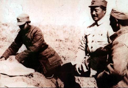 1938年,贺龙与毛泽东、朱德在中共六届六中全会主席台上交谈。