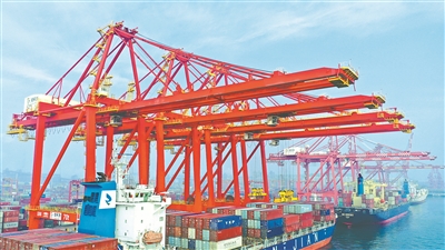 7月15日,国家统计局发布数据,上半年国内生产总值(GDP)同比增长2.5%。物价保持平稳、夏粮再获丰收增产、服务业逐步恢复……一系列指标显示我国经济呈现企稳回升态势,体现了中国经济发展的独特韧性和巨大潜力。图为货轮停靠在山东港口日照港集装箱码头进行装卸作业。 新华社记者 郭绪雷 摄