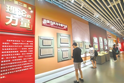 7月6日,观众在“百年恰是风华正茂——大型主题档案文献展”参观“理论的力量”单元。 本报记者 段相宇 摄