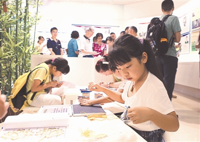 当年郑和七下西洋,所乘的“宝船”,就诞生于如今江苏省南京市鼓楼区江东街道宝船社区的“宝船厂”。7月28日,江苏首家社区廉洁文化体验馆——“宝船社区廉洁文化体验馆”正式开馆。该馆以互动、体验为特色,讲述廉洁好故事,弘扬勤廉好家风,全方位营造崇廉尚廉的社会风尚。图为近日,社区群众在参与廉洁剪纸、廉洁拓印、廉洁拼图等互动体验。吴德 古季萱 摄影报道
