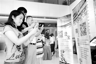 上海市嘉定区结合全区村(居)“两委”换届工作,举办“廉‘接’你我他”主题宣传活动,通过党规党纪专题教育培训、村(居)干部廉洁履职巡回讲座、廉政知 识竞赛等方式,加强对农村基层干部廉洁履职的教育引导。图为8月18日,该区村(居)干部通过手机扫描微信二维码参加廉政知识测试。余臻 摄