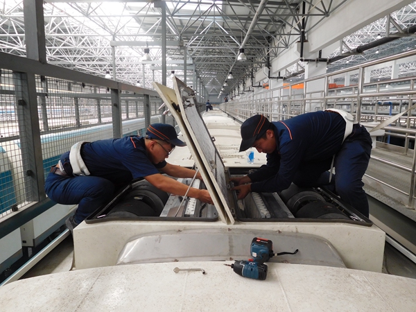 地铁人每天都要检查受流器有无损伤,绝缘板、橡胶限位止档有无裂纹,熔断器指示器指示是否正常等,以确保地铁的正常行驶。