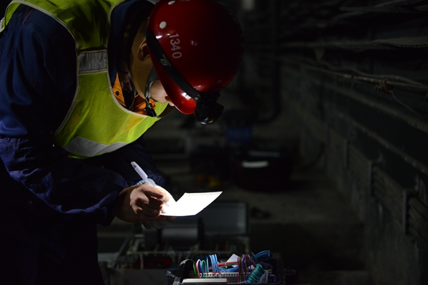 党员小胡是最早驻扎到环境艰苦的错埠岭车站的地铁人之一。地下环境湿冷,即使在炎热夏季也需穿着厚重的棉服御寒。动调阶段,他每天清晨就要在隧道内巡视并进行清场作业,为调试列车提供安全的运行环境。