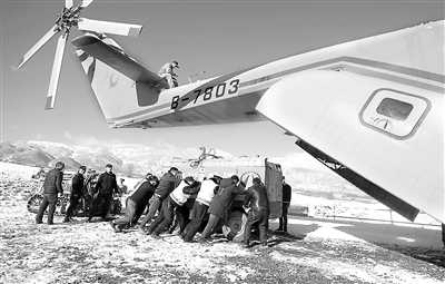 图片说明:四川省布拖县阿布洛哈村是全国最后一个不通公路的建制村,村民只能通过一条坡度近70度的羊肠小道从外界获取生活物资。为了让曾经的天堑变通途,2019年6月,阿布洛哈通村公路工程正式动工,全球现役运力最大的米-26重型直升机6次进出山谷,将8台大型工程机械设备送进村落。图为在布拖县城,工作人员合力将一台空气压缩机移动到米-26重型直升机机舱内。新华社记者 江宏景 摄