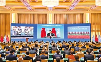 金秋时节的北京,秋高气爽,云淡风轻。主会场人民大会堂金色大厅内,灯光璀璨,鲜花绽放。中华人民共和国国旗和联合国旗交相辉映,联合国各会员国国旗组成的旗阵气势恢宏。