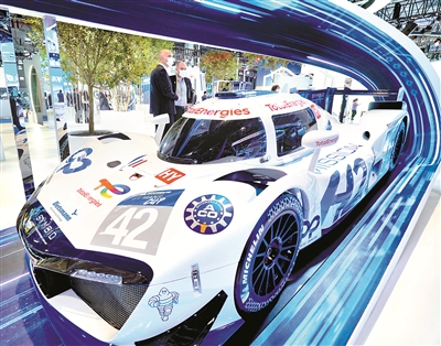 本届进博会上,众多“全球首发”“中国首展”产品亮相。这是11月5日,观众在观看米其林集团带来参展的世界首台氢能源驱动赛车。(图片来源:视觉中国)