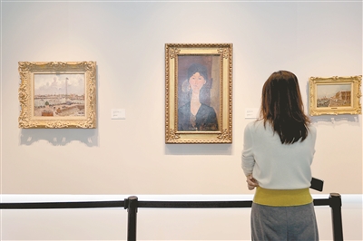 今年进博会首次设置文物艺术品板块,不仅在于推动形成一个新的艺术品国际交易平台,更在于推动海外中国文物回流以及中外艺术文化交流。图为观众在进博会服务贸易展区佳士得展位欣赏画作。新华社记者 王翔 摄
