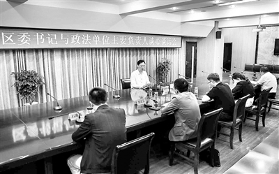 淮安市洪泽区委负责人集中约谈该区政法系统各单位一把手,督促扛好主体责任,从源头上预防执法司法腐败问题发生。陈云国 摄