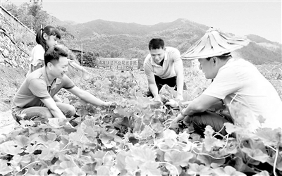 图为陈正平(左二)在黄枣村产业基地了解该村绿色无公害蔬菜种植和销售情况。杨特团 摄