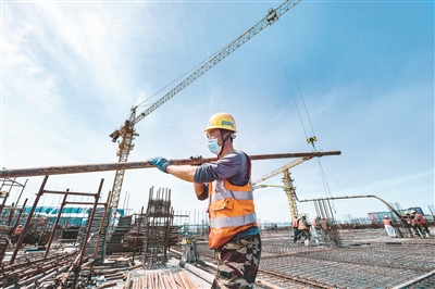 一边抓好疫情防控,一边紧张生产施工。图为辽宁省沈阳市中国医大一院国家肿瘤区域医疗中心工程项目施工现场。 (图片来源:人民视觉)